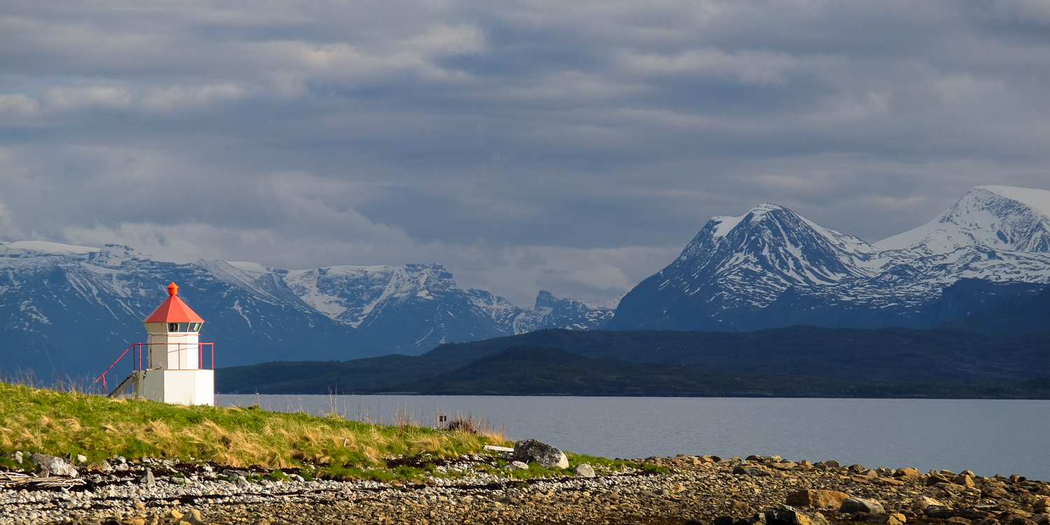 Kleiner Leuchtturm bei Spåkenes am nördlichen Lyngenfjord.