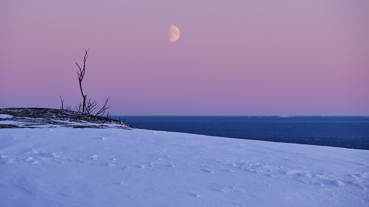 Monduntergang über dem Nordmeer vor Sommarøy.