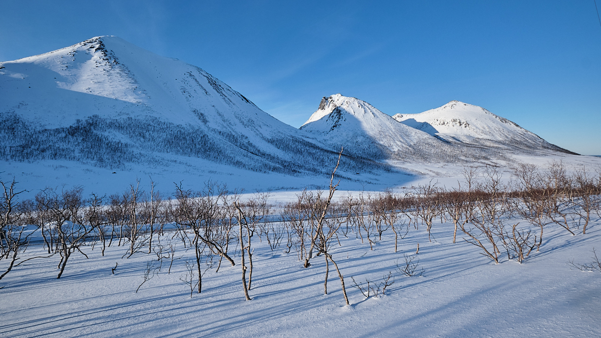 Sørtinden, Mellomtinden und Tromtinden auf Kvaløya.