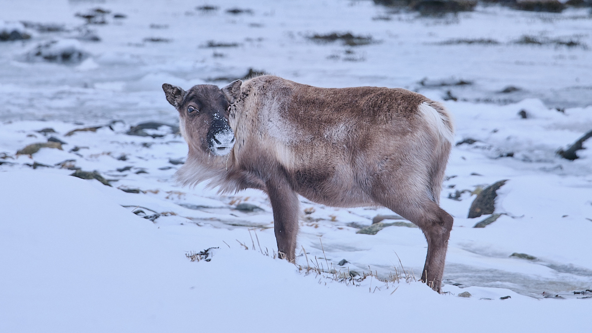 Auf Kvaløya können wir zu unserer Freude immer wieder Rentiere beobachten.